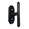 T alakú ablak kilincs. Ablak kilincs fekete színű felülettel, kovácsoltvas jelleggel. Címkeméret: 72 mm x 32 mm. Kilincsméret: 90 mm. Rögzítési pont távolsága: 41-43 mm. Külön kérésre lehet 61 mm rögzítéssel kérni, felár ellenében.