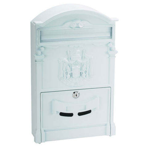 Alumínium öntvény előlappal ANTIKOLT színben. Készletről elérhető gyors szállítással. Befoglaló méretei: 260 mm x 410 mm Mélysége: 90 mm Levélnyílás mérete: 220 mm. Klasszikus dizájn: Reprezentatív címeres postaláda, amely kiválóan alkalmas a ház külső