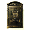 Alumínium öntvény előlappal ANTIKOLT színben. Készletről elérhető gyors szállítással. Befoglaló méretei: 260 mm x 410 mm Mélysége: 90 mm Levélnyílás mérete: 220 mm. Klasszikus dizájn: Reprezentatív címeres postaláda, amely kiválóan alkalmas a ház külső