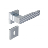 Prémium felületű Fényes Króm színű exkluzív termék készletről. Egyedi kockás aprólékos sakk táblára emlékeztető mintázatú, fényes mínőségi króm felületű kilincsgarnitúra. Egyedi dizájn és formatervezés. Négyzetrozettás kivitel. A garnitúra tartalmazza a