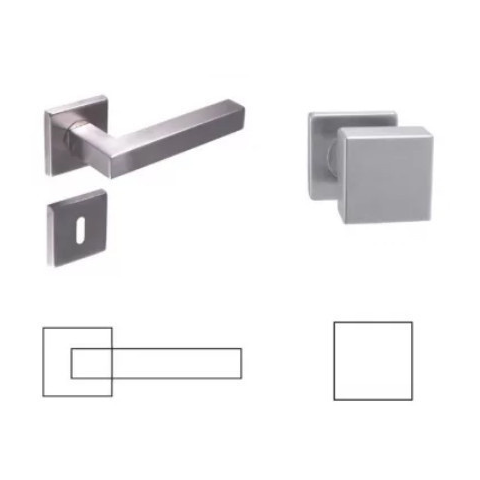 2 kép Gomboss/Perfekto Colombo (Cubik) Négyzetrozettás Rozsdamentes Inox WC Asszimetrikus Gomb/Kilincs