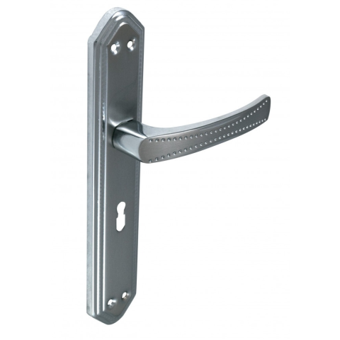 Elérhető áron az örök sláger ELZA ajtókilincs A pajzs acéllemezből készül, a kilincs pedig masszív alumínium öntvény. Szatén súrolt szatén króm/ fényes króm felület. Felülete galvanizálással nyeri el végső formáját. Rugós kivitelű ajtókilincs. Ajtócímke m
