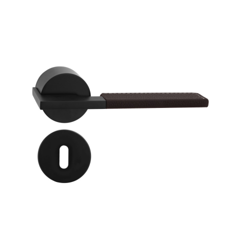 2 kép Gomboss/Perfekto G02 Körrozettás Exkluzív Barna bőrbetétes kilincsgarnitúra fekete Szín BB