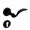 Kovácsoltvas jellegű Martin ajtókilincs, amelynek a sildje és kilincse alumínium ötvözetből készül. A rögzítési pontokat díszítő elem fedi el, így nagyon esztétikus. A felülete fekete, porszórással festett. A termék rugós működtetésű. Nagyon kedvelt mivel