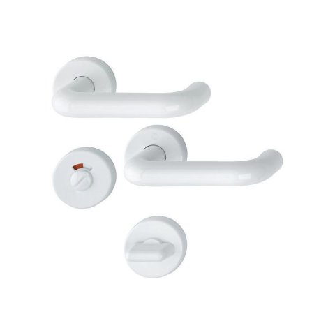 2 kép Gomboss/Perfekto Műanyag Körrozettás Ajtókilincs Fehér Szín WC Záras