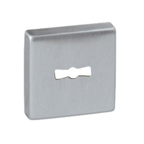 Zártakaró rozsdamentes alapanyagból szálra csiszolt felülettel. Fém belső résszel, rejtett csavarozással. Méret: 51 mm x 51 mm.