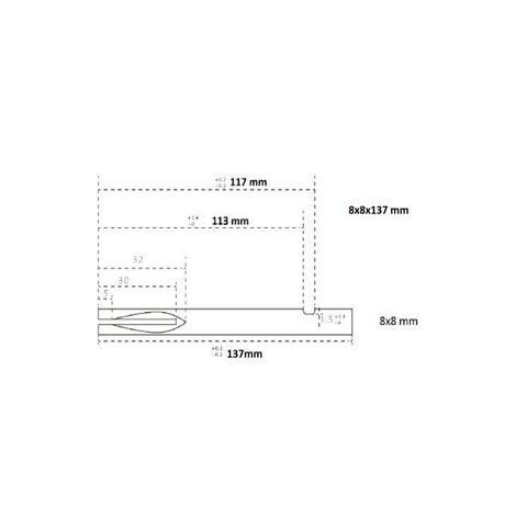 1 kép Gomboss/Perfekto Négyzetvas 8x8x137 mm egy oldalt hasított másikon spec beszúrás alu kilincshez