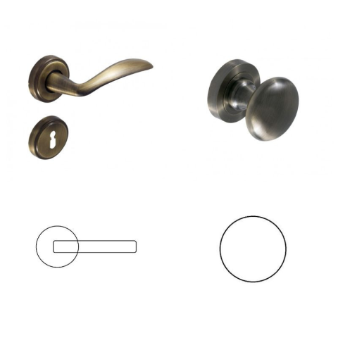 2 kép Gomboss/Perfekto Olive Rozettás Antik Súrolt Felület PZ Gomb/Kilincs