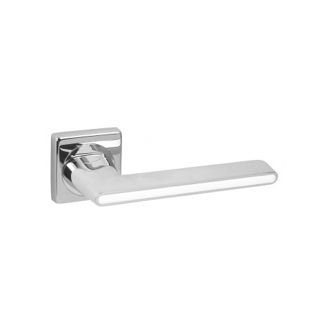 2 kép Gomboss/Perfekto Ontario Négyzetrozettás Fényes Króm Fényes Fehér betéttel (Csak Kilincs Felsőrozettán)