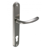 Modern kivitelű, nagyon impozáns megjelenésű, szépen ívelt ajtókilincs. Szálra csiszolt matt króm felülettel. A termék rugós működtetésű. Masszív kivitel. Ez a termék nem réz alapanyagból készül. Felülete galvanizálással nyeri el végső formáját. Ajtócímke