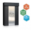 Falra vagy kerítésre kívülről szerelhető, felső bedobónyílással a küldemények sérülésmentes elhelyezéséhez. Kültéri kivitel: 0,5 mm vastag horganyzott, felületkezelt acéllemezből. Kifejezetten nagy méretű csomagok fogadására tervezett levélszekrény, C4-es