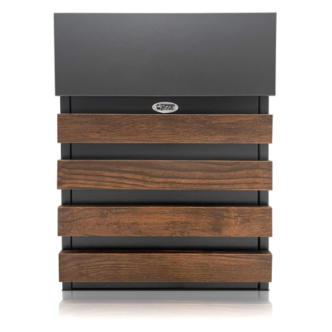 A levélszekrény a kerítés külső és belső oldalára egyaránt felszerelhető, rugalmas és praktikus megoldást kínálva bármely környezetben. Felső és hátsó bedobónyílása révén a postai küldemények kényelmesen elhelyezhetők. A kültéri kivitelű postaláda fa hatá