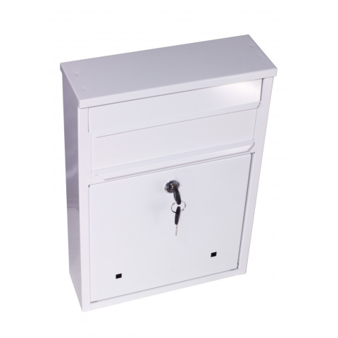 A csomag tartalma: 1 db postaláda, 1 db zár (felszerelve) és 2 db kulcs. Postaláda fehér színben. 2 oldalon bedobó nyílással ellátott kivitelben kapható. Magyar termék! Méretek: 405 mm x 280 mm Levélbedobó nyílás mérete: 255 mm X 35 mm Ajtó mérete: 24