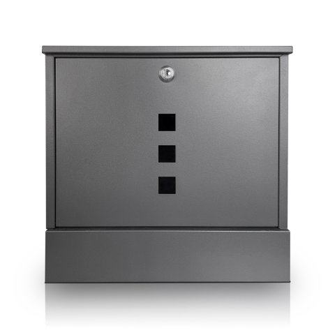 Ár-érték arányban az egyik legkedvezőbb, modern formatervezésű postaláda. Három lézervágott betekintőnyílással a küldemények könnyebb láthatóságáért (a betekintőnyílások belső oldalát víztiszta plexi védi). Az alsó részén reklám- és szórólaptartóval rende