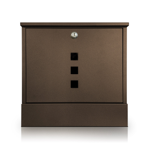 Ár-érték arányban az egyik legkedvezőbb modern formájú postaláda. 3 db lézervágott betekintőnyílással a küldemények könnyebb (a betekintőnyílás az ajtón belül víztiszta plexivel védett) vizuális észlelése érdekében. Reklám-, szórólaptartó a levélszekrény