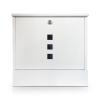 Ár-érték arányban az egyik legkedvezőbb modern formájú postaláda. 3 db lézervágott betekintőnyílással a küldemények könnyebb (a betekintőnyílás az ajtón belül víztiszta plexivel védett) vizuális észlelése érdekében. Reklám-, szórólaptartó a levélszekrény
