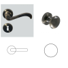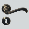 Antik hatású rozettás ajtókilincs, amely rendkívül kényelmes fogást biztosít. A fogantyú lágyan hajlított kézhez álló kidolgozású apró gravírozással a kilincs front oldalán. Kellemesen harmonizál, és egyben erőt sugároz a fogantyú sarkosított szélei. Ezze