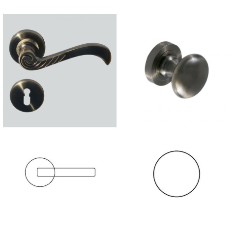 Antik hatású rozettás ajtókilincs, amely rendkívül kényelmes fogást biztosít. A fogantyú lágyan hajlított kézhez álló kidolgozású apró gravírozással a kilincs front oldalán. Kellemesen harmonizál, és egyben erőt sugároz a fogantyú sarkosított szélei. Ezze