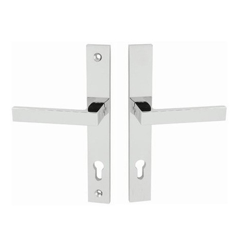 Bejárati ajtókra biztonsági kilincsgarnitúra. Felfelé is mozgatható kilincsel. A kilincs rögzítése átmenő csavarral történik így kívülről nem leszerelhető. Pajzs vastagság: 10mm Csavartávolság: 216mm Rendelhető méretek: 92 mm, 90 mm, 72 mm Átvehető rendel