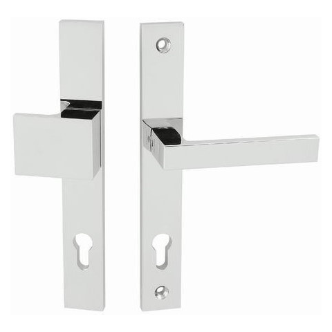 Bejárati ajtókra biztonsági kilincsgarnitúra. Felfelé is mozgatható kilincsel. A kilincs rögzítése átmenő csavarral történik, így kívülről nem leszerelhető. Pajzs vastagság: 10 mm Csavartávolság: 216mm Átvehető rendeléstől számított 2-3 munkanapon belül!
