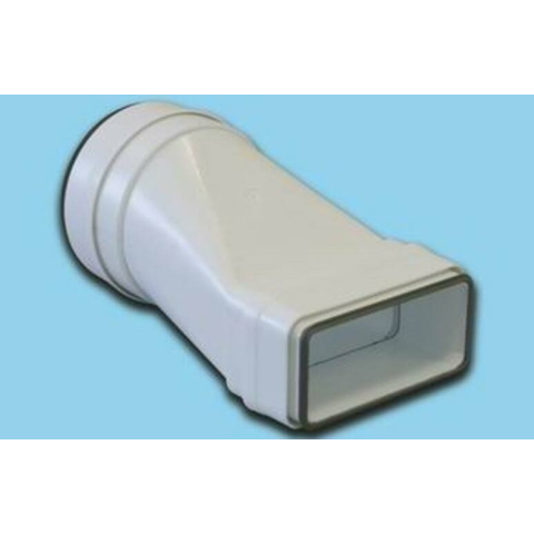 Légtechnikai rendszer kezdő- és végpontja között elhelyezhető átalakító elem, lapos csatorna és kör keresztmetszetű légtechnikai cső egymáshoz illesztéséhez. A téglalap keresztmetszetű légtechnikai csatornák, illetve a hozzá tartozó idomok alkalmazásával könnyebben elburkolható / elrejthető a rendszer alakítható ki.