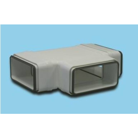 Légtechnikai rendszer kezdő- és végpontja között elhelyezhető "T-idom", lapos csatornák derékszögben, illetve egyenesszögben történő egymáshoz illesztéséhez.