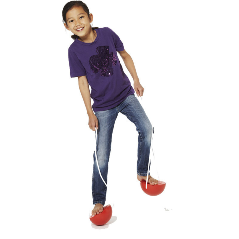 A lépegető félgömbök használata fejleszti az egyensúlyérzéket, segítségével bonyolultabb mozgássor is elvégezhető. A kézben fogott kapaszkodó emelése és a láb alatti félgömbbel a lépés mozgássor alapeleme. A színes félgömbök 15 cm átmérőjű, 7 cm magasak.