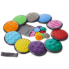 Érzékelő korong szett nagy Nagyszerű móka és fejlesztő játék egyben. A gyerekeknek kézzel és lábbal kell különbséget tenni a különböző mintájú és keménységű korongok között.Bekötött szemmel, lábbak kell a földön lévő korongokat érzékelni, majd kézzel a z