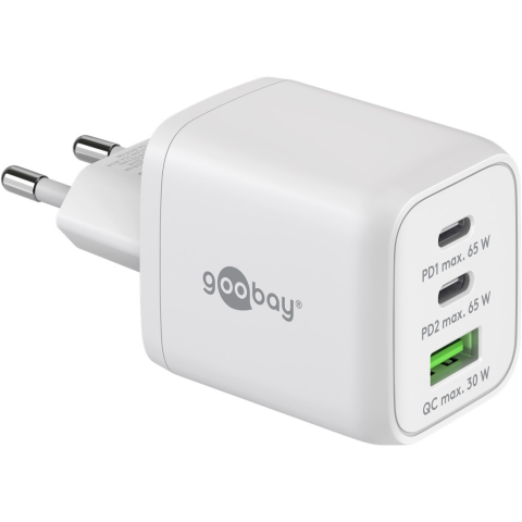 Goobay 64754 2x USB-C / USB-A Hálózati töltő - Fehér (65W) (64754) mobiltelefon kellék 1 kép