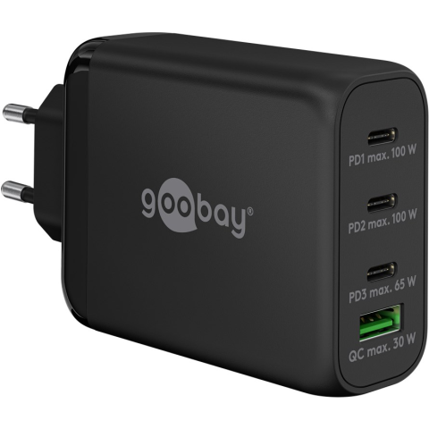 Goobay 65555 3x USB-C / USB-A Hálózati töltő - Fekete (100W) (65555)
