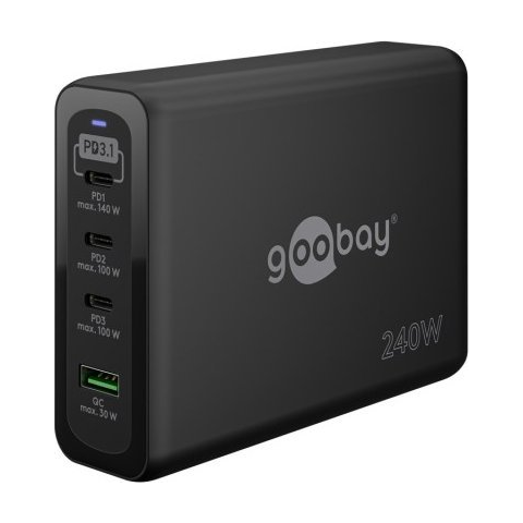 Goobay 65885 USB-A / 3xUSB-C Hálózati Gyorstöltő Adapter 240W - Fekete ( )