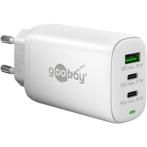 1 kép Goobay 65W hálózati USB-C gyorstöltő többportos Power Delivery, fehér