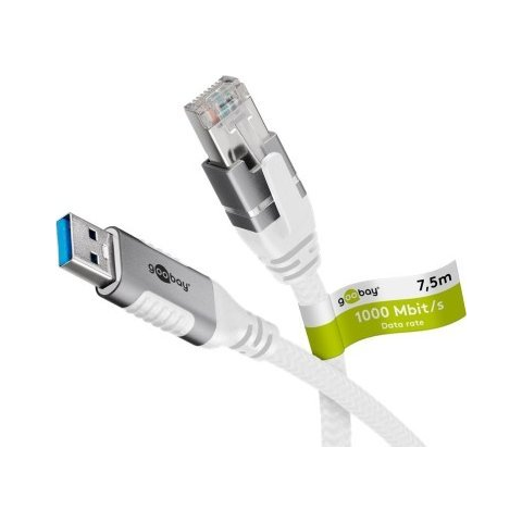 Goobay USB-A 3.0 apa - RJ45 Hálózati Kábel 7.5m - Fehér (RB74162)