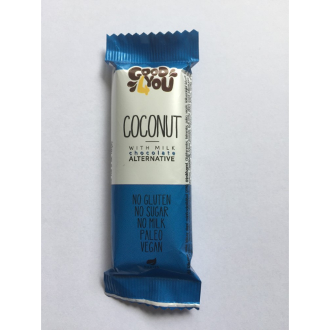 Gluténmentes, hozzáadott cukortól mentes, tejmentes, paleo és vegán szelet. Összetevők: kókusz (reszelék,liszt) (35%), élelmi rostok (oligofruktóz, polidextróz), kakaóvaj, édesítőszer (eritrit), tápióka keményítő, kókuszolaj (8%), nedvesítőszer (glicer