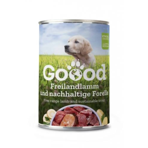 Goood konzerv junior bárány-pisztráng 400g kutyaeledel termékleírás