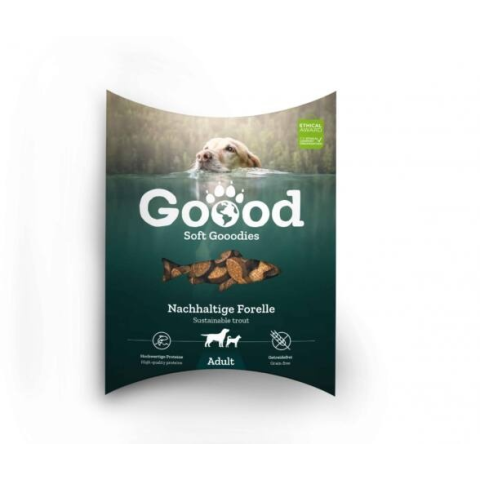 Puha Gooodies jutalomfalataink hús vagy hal, bajor zöldségek és a Goood létfontosságú összetevőinek kiegyensúlyozott egyvelege. A csomagolás újrahasznosítható, a tartalom pedig 100% ban klímasemleges. Kutya jutalomfalataink természetközeli összetétele nem tartalmaz cukrot, mesters