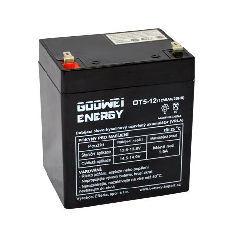 1 kép Goowei ENERGY Karbantartásmentes ólomakkumulátor OT5-12, 12 V, 5 Ah