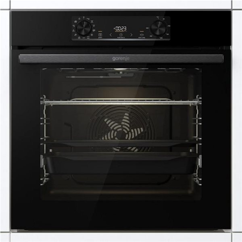 Beépíthető sütő - mérete 59,5 × 59,5 × 56,4 cm (M×Sz×Mé), gőzsütési funkció, űrtartalma 77 l, a felszereltség része gyors előmelegítés funkció, grill, kiolvasztás funkció, pizza program, teleszkópos tepsi kitolás, tompított ajtózárás és 2 rétegű üveg, hűtőrendszer, 3500 W teljesítmény, időzítő és belső világítás, 2 tepsi és 1 rács a csomagban, hidrolitikus tisztítás, A+ energiaosztály Select brand: Gorenje BOS6737E06BG beépíthető sütő77 lit