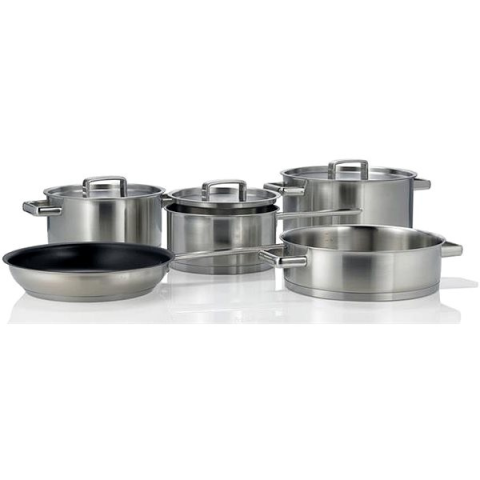 Edénykészlet - gáz, elektromos, indukciós és üvegkerámia főzőlaphoz, 4 fazék és 1 serpenyő a készletben, mérce, maximális sütési hőmérséklet a sütőben 200 °C, edény anyaga rozsdamentes acél, fazék külső felülete rozsdamentes acél, fazék belső felület rozsdamentes acél, fazék nyelének anyaga rozsdamentes acél, serpenyő belső felülete rozsdamentes acél, serpenyő külső felülete rozsdamentes acél, serpenyő fogantyújának anyaga rozsdamentes acél, fed