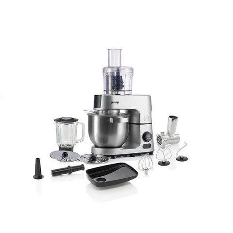 Konyhai robotgép - multifunkciós, teljesen fém ház, bolygóműves keverés, 1500 W teljesítmény, fém belső áttétel, alumínium burkolat, keverőtál anyaga rozsdamentes acél, keverőtál űrtartalma 7 l, 12 sebességfokozat, érintésvezérlés, teljes fordulatszám szabályozás, PULSE gomb, lengőkar, biztosíték, funkciók habverés, keverés, dagasztás, tömegmérés, őrlés és keverés, tartozékok kolbásztöltő feltét, szeletelő feltét, húsdaráló, mixerfej, szeletel