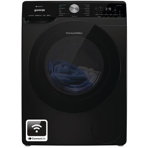 Mosógép - elöltöltős, A energiaosztály, 8 kg töltetkapacitás, súlyozott energiafogyasztása 47 kWh/100 ciklus, súlyozott vízfogyasztása 47 l /1 ciklus, gőzprogram, inverter motor, késleltetett indítás, gyorsprogram, kijelző, ruhadarab hozzáadása, mobilos vezérlés, gyerekzár és mosási program végét jelző hangjelzés, Power Wash és Gőzkezelés, centrifugálási fordulatszáma 1400 ford/perc, mérete 60 × 85 × 54,8 cm (Sz×Ma×Mé) GORENJE W2NS84SA/BCZ keskeny mosóg