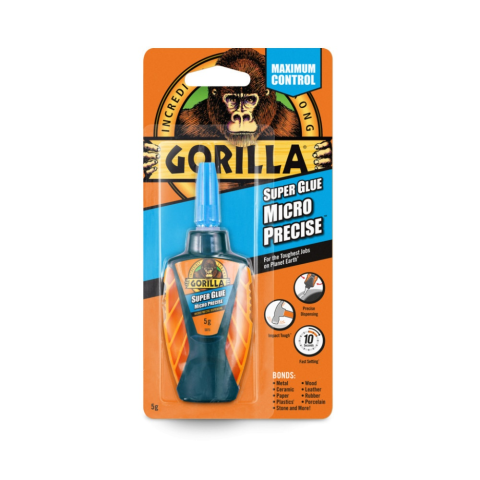 Extra erős, ütésálló, mikro precíziós pillanatragasztó.A Gorilla Super Glue Micro Precise 5g-os kiszerelése ergonomikus kialakításával és extra pontos adagolójával tűnik ki. Az Impact-Tough™ technológiának köszönhetően a ragasztás nemcsak erős, de ütésáll