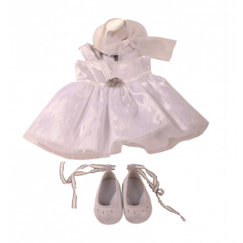 1 kép Götz alkalmi babaruha, bros díszítéssel, szatén kalappal