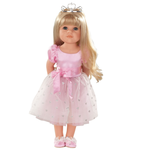 Kiváló minőségű fésülhető álló Götz baba. Tükröm, tükröm… Minden kislányban ott lakik egy hercegnő is! Hannah egy igazán elegáns rózsaszín tüllruhát visel, csillogó szívecskékkel. A hosszú, szőke hajában az ezüst színű diadém igazi hercegnővé teszi őt.