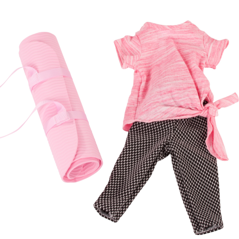 Götz babaruha szett jógamatraccal, nagy méretű álló Götz babákra Szett tartalom: – póló – nadrág – tornaszőnyeg hordszíjjal A baba illusztráció, nem tartozik a termékhez, külön megvásárolható!