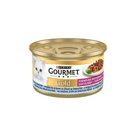 1 kép Gourmet GOURMET GOLD Tengeri hallal szószban spenóttal duó élmény nedves macskaeledel 85g