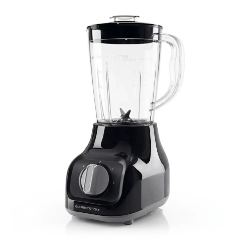 GOURMETMAXX Turmixgép 1L 350W fekete DS10998 4 rozsdamentes acél pengével a hatékony pürésítéshez, keveréshez és aprításhoz Fehérje turmixhoz, gyümölcs turmixokhoz, koktélokhoz és még sok máshoz Egyedi és tökéletes textúrák a 2 sebességfokozatnak köszönhe