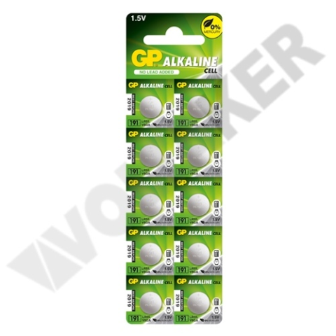 191A típusú alkáli gombelem, mely 1.5V feszültségű, átmérője 12mm, magassága 2mm.Órákban, számológépekben, elektronikai készülékekben használható.Megtalálható még az alábbi jelöléssel: AG8, LR55, LR1121, 391A képen 1 csomag látható, mely 10 db elemet tartalmaz. Áraink darab árak, nem csomag.
