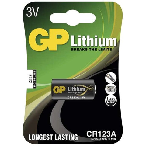 1 kép GP CR123A, lítium, 1 db buborékcsomagolásban