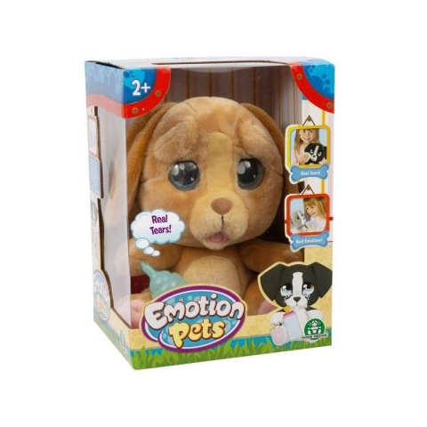 Egy szomorú kiskutyának lehetetlen ellenállni, főleg, ha olyan pihe-puha, mint az Emotion Pets kutyusok.Nem kérdés, ez a kis kedvenc el fogja rabolni a kicsik szívét - már csak azért is, mert a szeretetgombóc valóban pityereg, hogy törődjenek vele.Miután a gyerekek megtöltötték vízzel a csomagban található cumisüveget, valóban megitathatják a kutyust. Ezt követően a kutya bal mancsát megnyomva a könnyek kicsordulnak a hatalmas, kifejező szemekből, és nincs is más